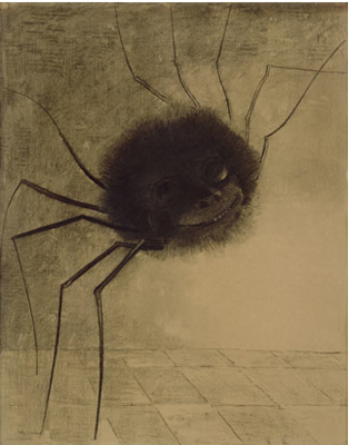 Redon ouvre les portes du rêve et du cauchemar : « Tout se crée par la soumission docile à la venue de l’inconscient », nous fait monter dans des ciels (pas des cieux) où nous sommes regardés par des oeils (pas des yeux), des oeils ailés, tantôt oiseaux, tantôt araignées, anges et démons.