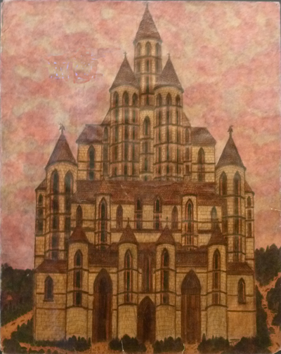 Ce n’est qu’à l’avant-dernier carton, qu’il signe réellement : par son prénom. L’obsession et le dessin délirant ne sont pas dissociables de ces couleurs qui disent beaucoup sur son sens de la vie : il a manqué de tout, mais n’avait besoin de rien, ses mots étaient ses œuvres, alors qu’il était dans son monde, le sien, celui qui ne pouvait pas lui être retiré. Il dessinait pour lui, avec la une vision d’un univers supérieur auquel il contribuait et accédait durant le temps de la création. Après les églises, ces valeurs protectrices, rassurantes tournées vers le passé et dessinées en crayon de couleur avec application dans la symétrie, il a orienté son désir, avec une imagination de plus en plus hardie, vers l’avenir, vers la ville, dont il était l’auteur et le seul témoin.