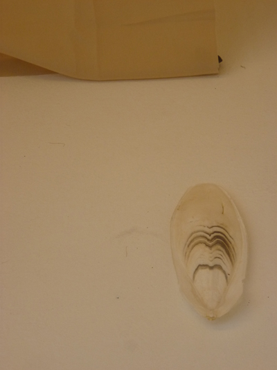 Tout est blanc comme le linceul du Tombeau vide, le coquillage aussi. Il a été trouvé dans le Pô ; l’ancienne demeure d’un animal mort est réduite à sa trace de calcaire.