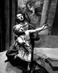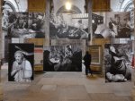 L’expressionnisme de Pier Ilario Benedetto. Le noir et blanc a une triple fonction : il gomme les injures du temps sur les œuvres en atténuant la perception de leur altération, ce que la couleur aurait montré ; il donne une sorte d’universalisme et d’intemporalité aux œuvres ; il accentue les volumes et contrastes. Certes, ces photos, notamment de l’enfant traduisent la tendresse des regards (sculpteurs et photographe), mais le photographe bascule souvent dans une autre esthétique : l’expressionnisme des années 20-30, celui de Fritz Lang, dans Metropolis, M le maudit, ou encore Fury. Le metteur en scène explorait les dérives du totalitarisme, de la démocratie et de la justice et mettait son style au service de cette cause. Dans « Sacri Monti » présenté à Saint-Merry, pas de dénonciation ; mais la combinaison du N&B et des prises de vue transforme la dramaturgie débridée des églises italiennes en scènes dramatiques de la vie populaire et semble préparer au drame de la mort du Christ.