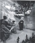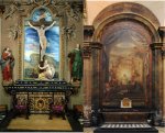 Ce qui est montré à Saint-Merry s’éloigne par bien des aspects de ce qu’un visiteur peut voir in situ. En effet, il y a été procédé à un accrochage, ou mise en scène, de photographies de ces ensembles de sculptures originelles qui, dans des églises italiennes, relèvent d’une autre théâtralité. On est dans la mise en miroir : le baroque italien face à une chapelle baroque française, ayant ses marques de théâtre comme le suggère le rideau dans la toile de Charles Coypel, « les pèlerins d’Emmaüs ». Reconnaissons que le baroque français est bien plus sage !
