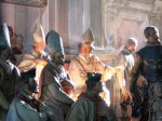 Les personnages. Ils étaient sculptés dans la veine de ceux du Caravage. Ce dernier, en opposition avec l’idéal de beauté de la Renaissance, avait choisi des individus du peuple comme modèles pour ses scènes religieuses et avait en conséquence créé le scandale, le profane le plus aride étant le vecteur visuel des textes sacrés. Mais de nos jours, ces personnages ordinaires, laids et difformes parfois, habillés comme tout le monde, pourraient se trouver dans n’importe quel musée d’art contemporain, faits en résine, avec des cheveux et poils minutieusement plantés. En effet, les photos montrent la dynamique des corps et ces détails des barbes et cheveux bien réels. Bref, un Maurizzio Cattelan, le trublion italien de l’art contemporain mondial dont on connaît les provocations artistiques, ferait probablement siennes ces sculptures. On pourrait aussi dire que ces photos sont le substitut d’une photographie de performances actuelles, tant les sculptures respirent encore la vie.