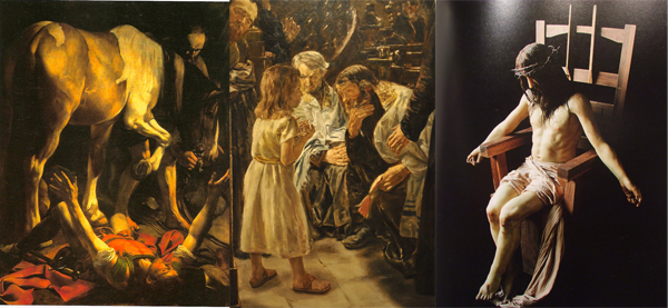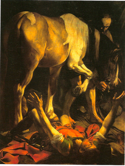Le Caravage avait peint précédemment une « Conversion de saint Paul » (1601) pour l’église Santa Maria del Popoplo, où le sujet principal n’est autre que la croupe de cheval, placée en pleine lumière, l’apôtre étant réduit à la portion congrue, allongé par terre ! La force de la composition et la lumière étaient au service de la vision de cet épisode fondamental dans la vie de Paul de Tarse, une rédemption (auquel l’artiste était peut-être sensible) et l’ensemencement d’un apostolat.