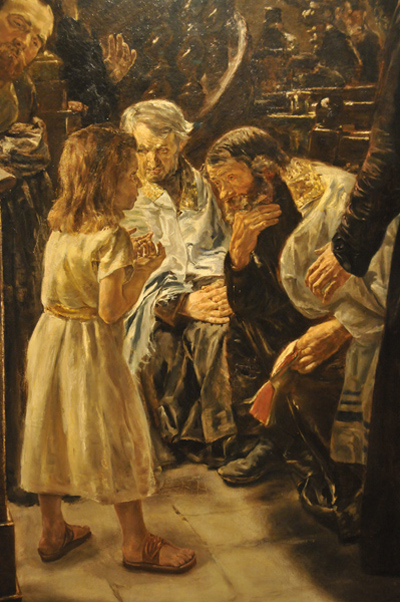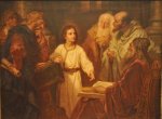 Jésus, douze ans au Temple : en 1879, le tableau de Max Liebermann (1847-1935), qui fut le représentant le plus marquant de l’impressionnisme allemand et assura la transition de l’art du XIXe et du XXe siècle, fut présenté à la deuxième exposition internationale de Munich.