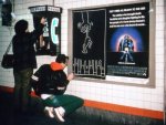 En arrivant de Pittsburgh à New York en 1978 pour y faire ses études d’art, Keith Haring se plonge immédiatement dans le milieu de la street painting en dessinant dans le métro, à la craie, sans signer, ses dessins étant immédiatement reconnaissables ; son objectif est de produire de l’art pour tous. Mais il le fait de manière respectueuse, c’est-à-dire sur les parties noires des affiches ou ne heurtant pas le public avec des scènes sexe, par exemple.