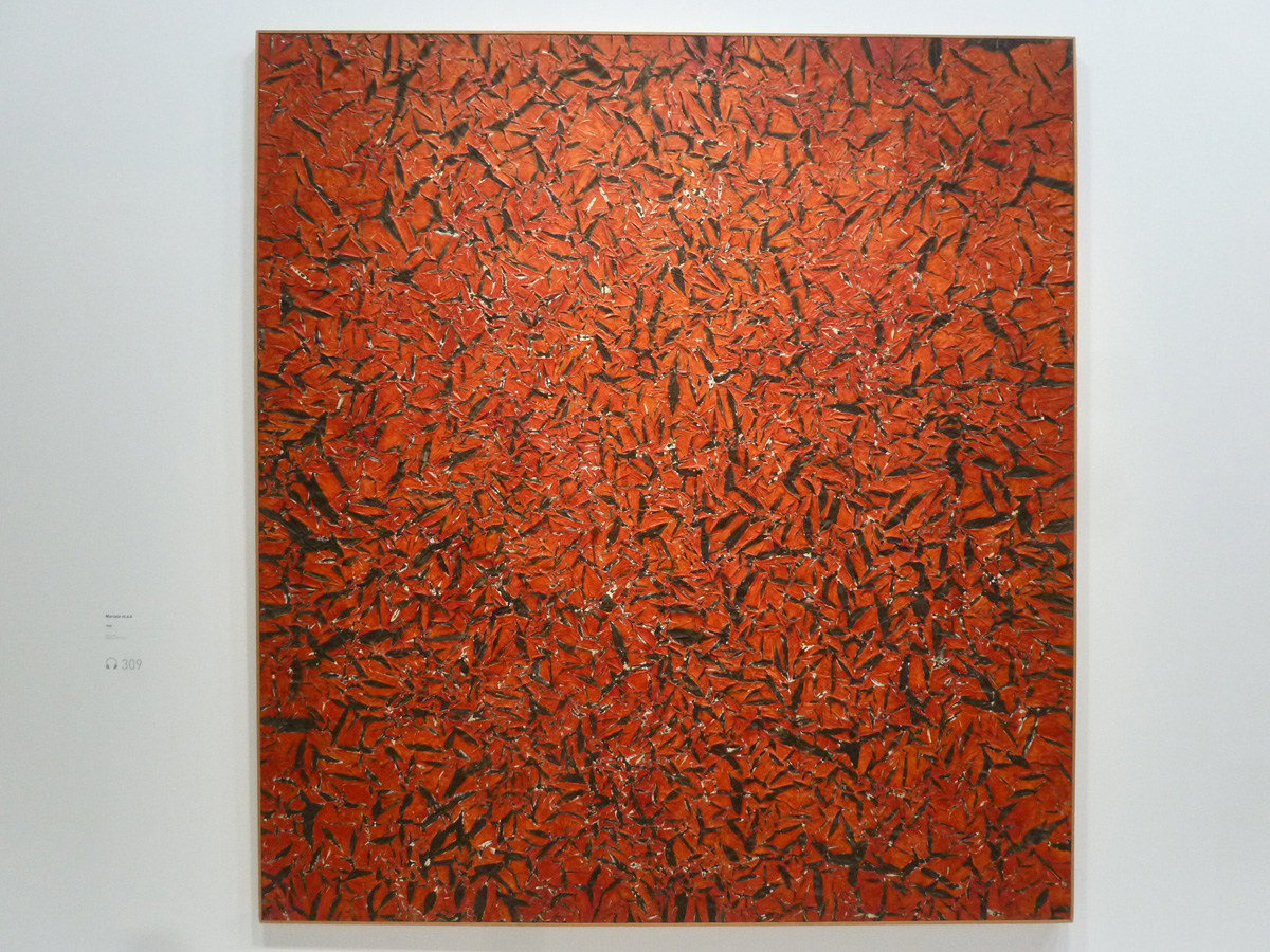 La scénographie respire et le film de fin d’expo permet de comprendre comment l’artiste faisait ses pliages et laissait fleurir brusquement ses œuvres après les avoir peintes à l’aveugle.