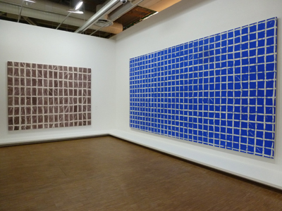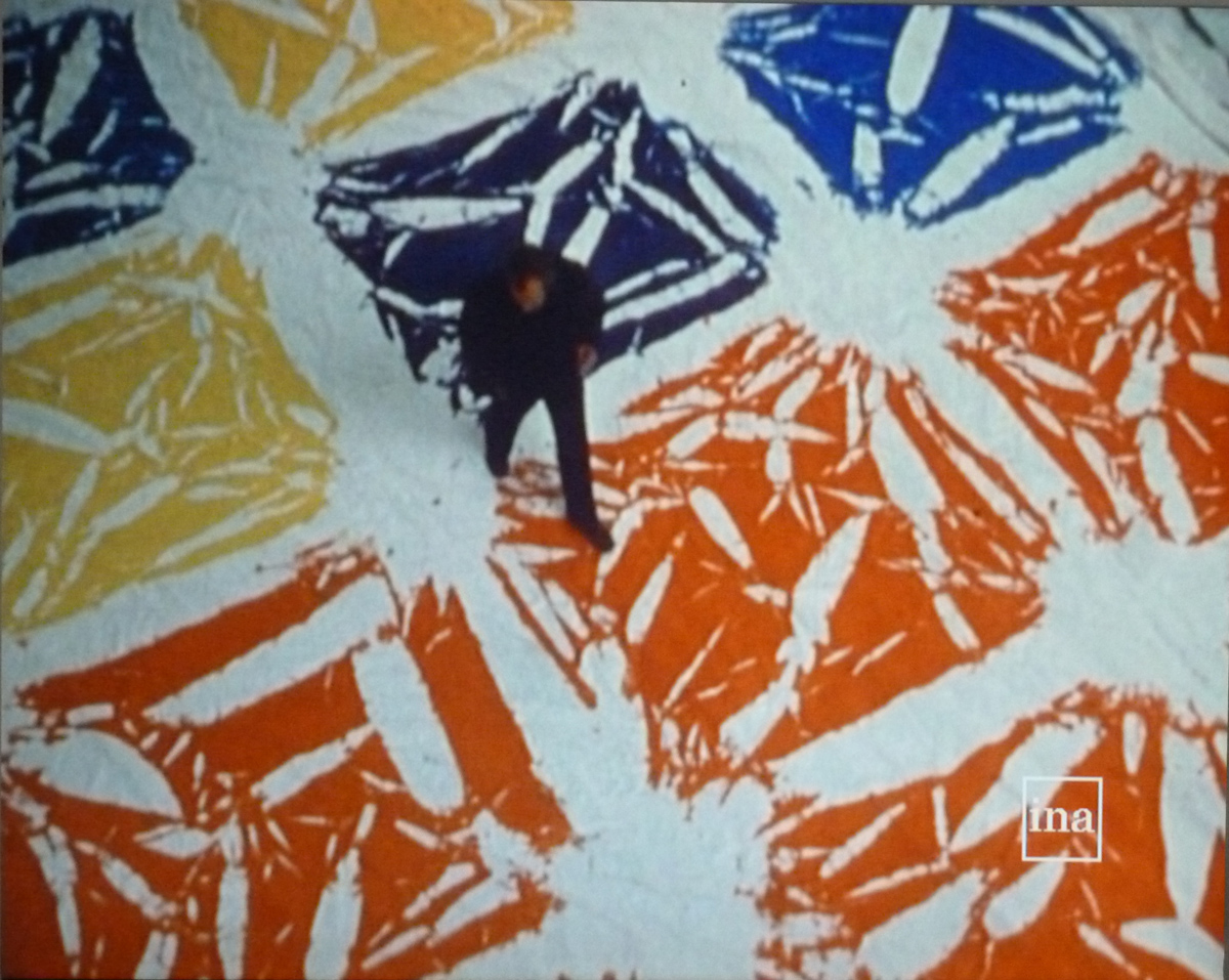 Avec « Tabulas », Simon Hantaï invente encore une autre technique à base de nœuds, ce qui va permettre au blanc de s’intégrer à la couleur, par entrecroisements, sur des surfaces aux dimensions hors du commun.