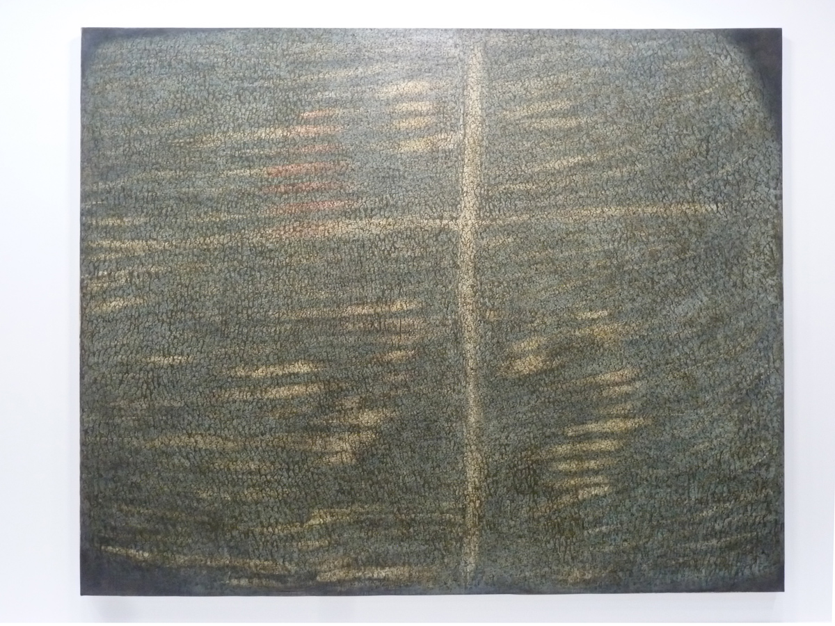 « À Galla Placidia » relève de la peinture et est exécuté par touches sombres chaque soir, à l’aide d’une petite pièce métallique. Son titre et cette technique font référence au mausolée de Ravenne et à ses mosaïques byzantines. De cet « all-over » surgit alors une grande croix qui devient un grand signe plastique.