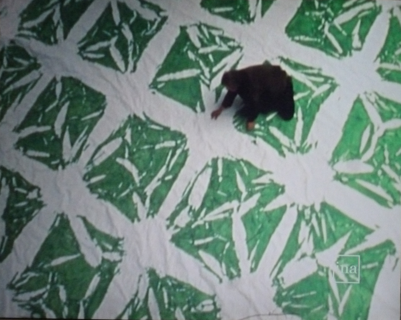 Dans la série des « Tabulas » (1973-1976), les pliages produisant des rectangles colorés sont liés à la dédicace à Piero della Francesca, à sa Madonna del Parto. Dans le tableau du maître, deux anges ouvrent en effet un manteau dont le fond est quadrillé.