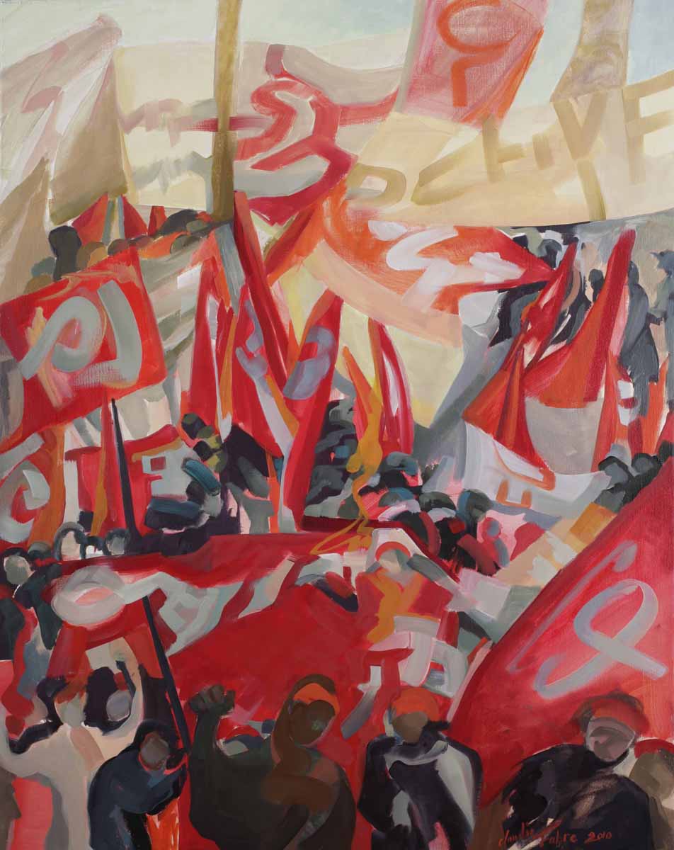 À l’heure où l’on déplore la désindustrialisation française, où la crise malmène les territoires sans donner d’alternative économique, cette œuvre faite de dessins, de peintures et d’aquarelles, qui se promène dans des centres municipaux, des entreprises, des lieux du syndicalisme parle de ce qui a fait le ciment d’une société, où l’autre était proche car quotidien, dans le travail de l’usine, la manif ou le HLM. Le Proche n’est pas ici nostalgique mais digne.