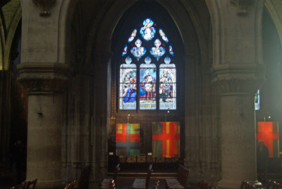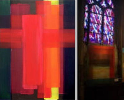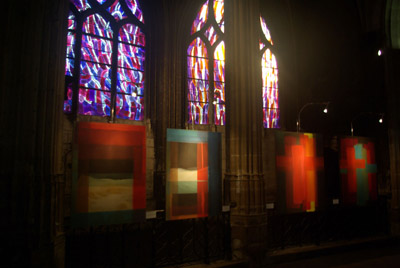 Une œuvre qui porte la référence religieuse du lieu et qui, par la dimension des toiles, va se mesurer à la hauteur de la nef ; 3 à 5 toiles abstraites, en référence à Manessier, peintes à la caséine , un mat obtenu selon une tradition ancienne, et d’où semble sortir la lumière, tel un vitrail. Une œuvre faite pour Saint-Merry et pour le temps pascal. Un pari, un défi. Anne avait montré un splendide chemin de croix peint à Saint-Séverin en 2012.