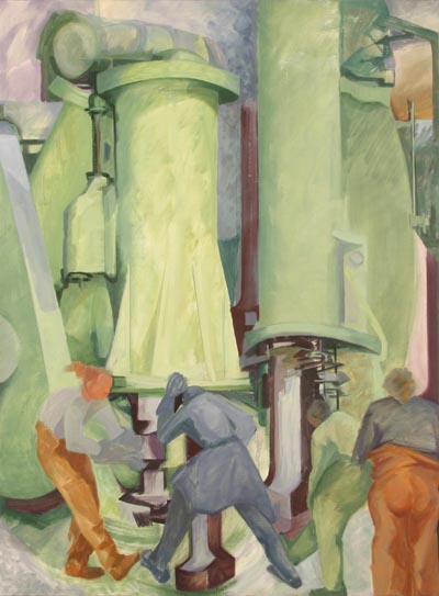 « Je peins l’univers industriel et particulièrement le travail ouvrier. Née dans le Bassin industriel creillois et élevée au cœur de la culture ouvrière, une partie de mon travail artistique concerne le milieu industriel et particulièrement les connivences entre l’homme et la machine : d’un côté les formes puissantes en acier et les mouvements féroces des machines, de l’autre l’inventivité des hommes et des femmes, la précision et la délicatesse de leurs gestes. Corps, machines, matières, mouvements, bruits, lumières mêlées, voilà ce que je peins. »