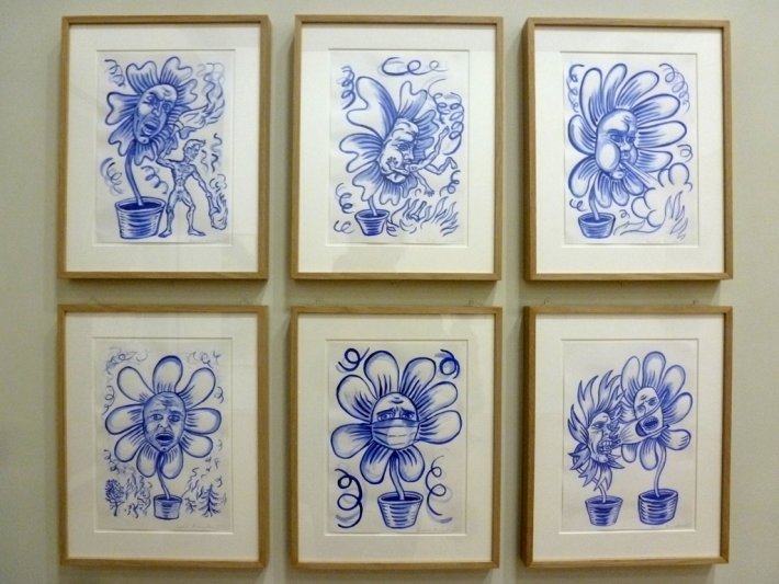 Puis, le dessin a suivi les mouvements de la peinture et des arts, en s’hybridant, en changeant les supports, le papier n’étant qu’un parmi d’autres, la peau des hommes et des animaux faisant irruption, Wim Delvoye exposant la peau d’un cochonqui a été tatoué de son vivant. Le crayon et l’encre ont laissé place à la peinture, aux « média mixtes ». Le dessin a été nourri de l’écriture insérée, s’est ouvert au mouvement, avec les séries. S’il est à la base du 9ème art, la BD, en retour ce genre l’a fortement influencé en introduisant de nouvelles approches de l’imaginaire ou des mises en scènes, tandis que plusieurs dessins pouvaient être mobilisés ensemble pour n’en faire qu’un, devenant des sortes d’installations, voire des sculptures. Mais ce sont surtout les sujets qui ont été les lieux des bouleversements majeurs.