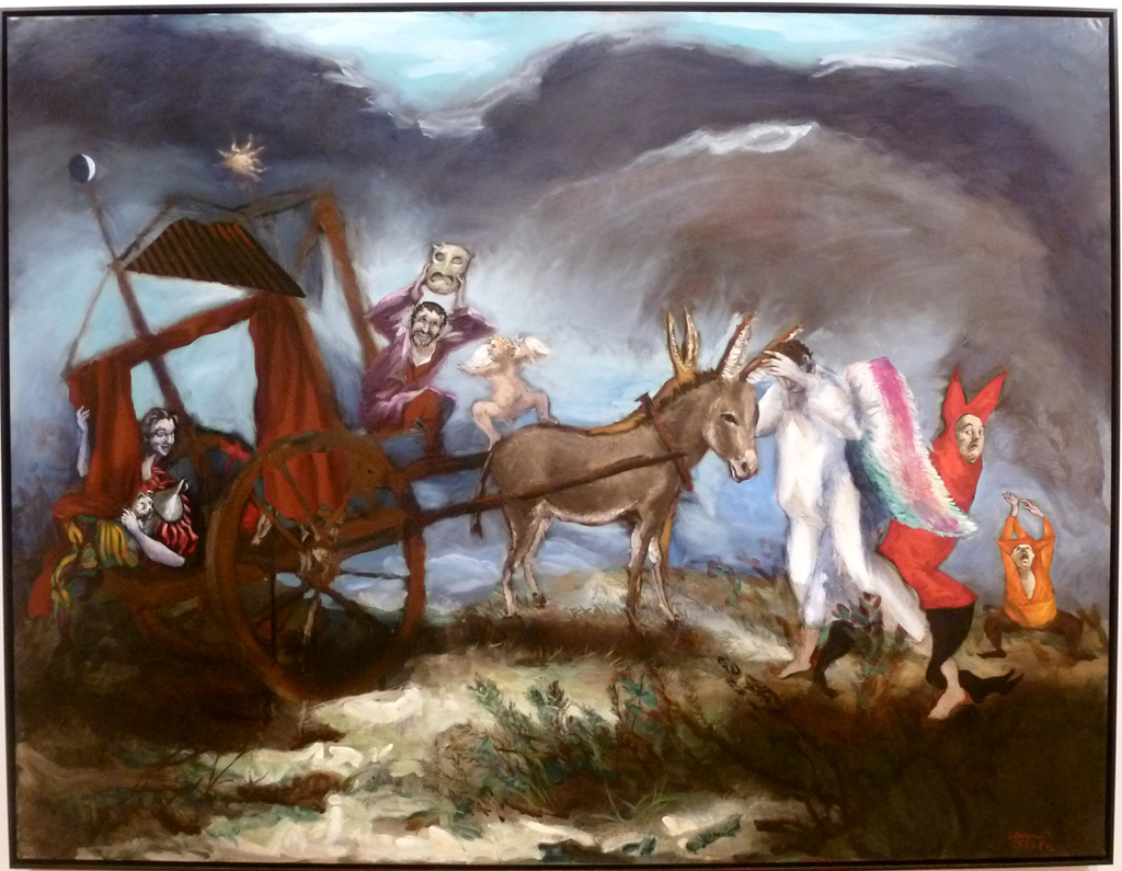 Ce risque là est celui de la joie à trouver un nouveau sens, en partant d’un grand texte (la Bible, Cervantès, Rabelais, Dante, La Fontaine et même Hergé). Cette attitude est à la base de la pensée talmudique, celle qui désormais traverse la vie de Gérard Garouste, d’exposition en exposition.