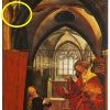 Dans l’épisode des « Sept boules de cristal », le capitaine Haddock qui croit avoir compris un tour de magie (le miracle de la transformation de l’eau en vin…) veut revoir le spectacle du magicien. Mais, il se prend les pieds dans les décors. Le rideau dans lequel il titube porte une étoile de David sur laquelle se superpose l’image d’un vampire. Pour un enfant, ce signe est maléfique. Derrière le divertissement de la lecture, un signe antisémite que Gérard Garouste relève. Dans son tableau, il y a bien le rideau (encore un…) et l’étoile, un Haddock à la tête d’animal (le centaure inversé). Mais le plus important est ailleurs, tout aussi énigmatique et violent que la crèche : la momie pisse sur la huitième boule de cristal. La dénonciation d’Hergé va de pair avec la tintinophilie de l’artiste.