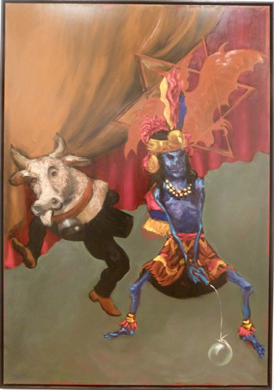 Entrer dans une exposition Garouste est, dans un premier temps, rassurant : c’est de la peinture ou de la sculpture. La référence classique semble à portée de main. Mais, dès que l’on s’arrête, on devient perplexe. Non pas déstabilisé, mais interrogatif. Rien n’est gratuit, c’est évident, les cartels disent des choses, mais seulement quelques-unes, sur la toile ou l’objet,. On est capable de distinguer un grand nombre d’éléments, de reconstituer des bouts d’histoire. La cohérence de la construction est à portée de main, mais le sens échappe à celui qui ne s’arrête pas, qui ne travaille pas en lui-même, qui ne se risque pas à l’épreuve de l’œuvre en face-à-face.