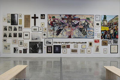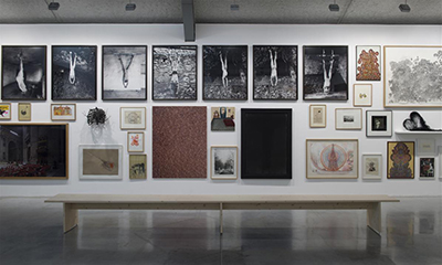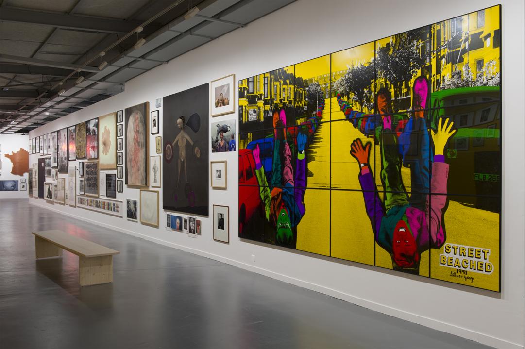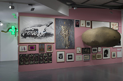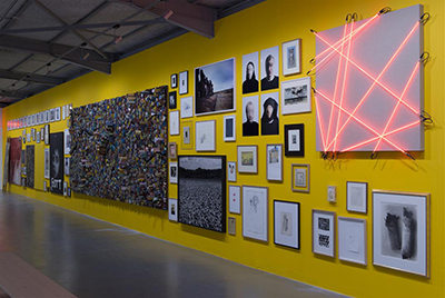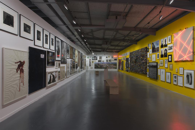 En effet, Antoine de Galbert dont le projet initial était de montrer des collections privées [1] dans un nouveau lieu parisien à la Bastille revient à ses origines et expose sa propre et vaste collection. Comme la contrainte majeure était le linéaire des cimaises, 278 m de long sur près 3,5 m de hauteur, il n’en montre que 40%, ce qui est déjà beaucoup. Pour optimiser l’accrochage, il a confié à un ordinateur le soin d’organiser au hasard la mise en proximité de ses œuvres. Quel résultat !