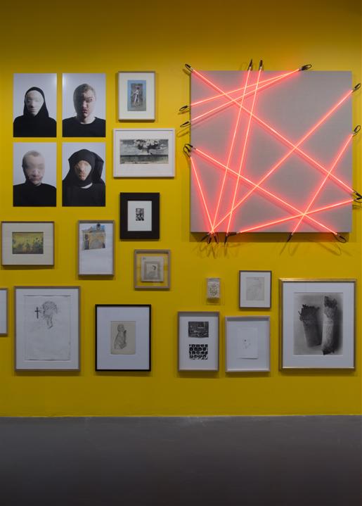 Le malaise tient dans ce qui apparaît comme une sorte de cure analytique : tout est mis aux murs. Quels sens doit-on donner et en quoi cela concerne-t-il le spectateur ? Au début de l’exposition, deux œuvres échappent à ce principe, une réinterprétation du jugement dernier (Gathering de NH Knox et T Thompson) dans le domaine de l’art : qui sera sauvé ou damné ? Et une œuvre ultraminimaliste : deux clous et un faisceau de lumière (Painting of light de HP Feldmann) l’image fantôme - et de dérision - d’une future œuvre à acheter !