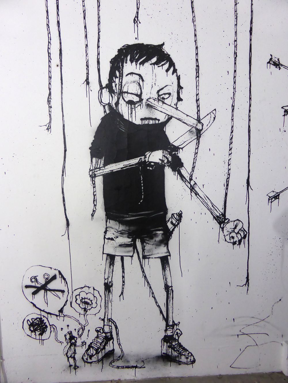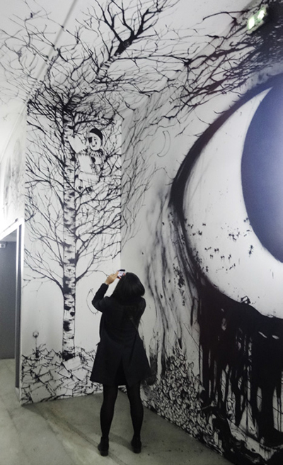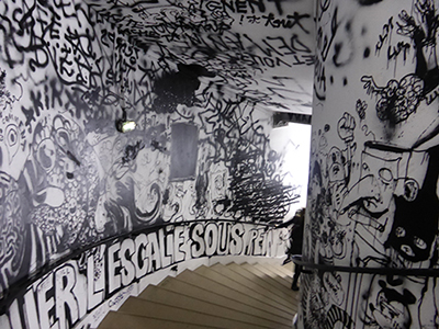 « Inside » joue sur les mots. On n’y voit pas des œuvres accrochées, mais on visite l’intérieur du Palais de Tokyo qui a été transformé par les artistes, parfois sur le mode du Street art, ou plus souvent selon une muséographie accentuant le projet : mettre le spectateur à l’intérieur des œuvres et l’éprouver dans ses perceptions. « Inside » est conçue comme une métaphore des pensées humaines et des craintes les plus secrètes, bref, un voyage initiatique.