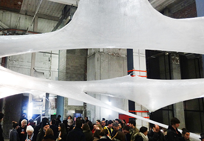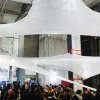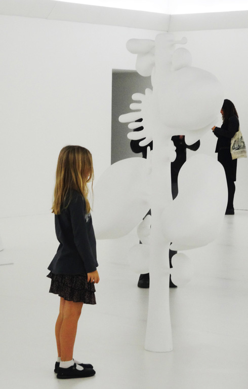 En entrant, on comprend pourquoi : un tunnel en scotch transparents surplombe le hall (Numen/for use). Les enfants s’y faufilent jusqu’à l’entrée de l’exposition Inside. Une façon de les intéresser à l’art moderne, déjà utilisée à la gare St Sauveur à Lille ou au Macro à Rome.