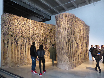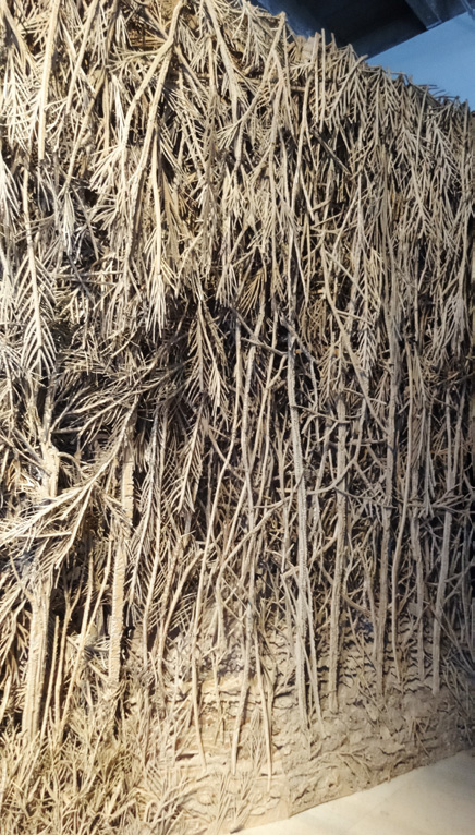 Une forêt impénétrable et fascinante en carton sculpté ouvre ce voyage intérieur (E. Jospin). Lire article autour de l’expo de l’artiste à Saint-Merry