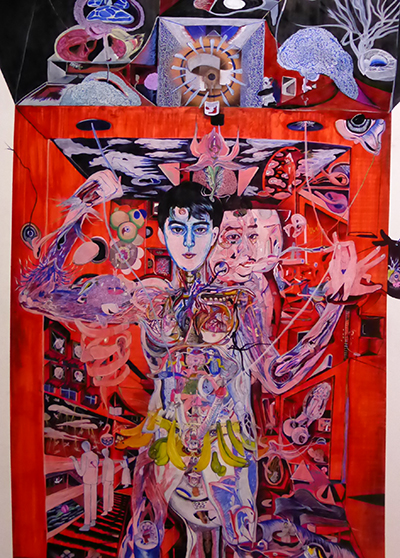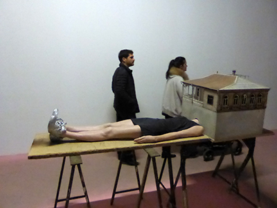 D’autres chocs visuels ponctuent ce parcours comme l’œuvre de l’énigmatique Géorgien A. Wekua. Allongé et basketté, un corps juvénile et gracile s’encastre dans la maison de son enfance. Cette sculpture illustre l’affiche de l’exposition.