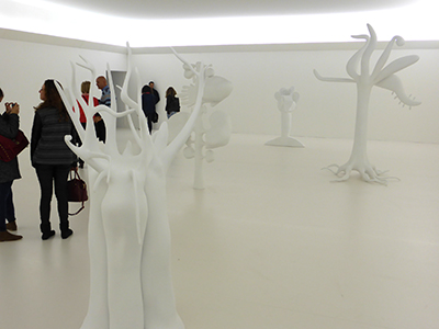 Inside est un labyrinthe alternant salles sombres et salles claires, voire aveuglantes, comme celle où sont exposées les sculptures d’arbres imaginées lors d’un test psychologique, « dessinez un arbre » (C. Berdaguer et M. Péjus).