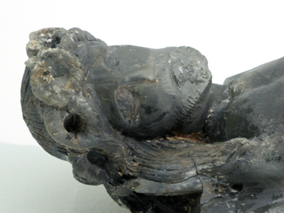 Une œuvre radicale : bruler une sculpture religieuse ancienne en bois et lui substituer simultanément la même forme en verre. Une technique fascinante. Une voie matérielle pour exprimer ce qu’on appelle mystère ? Déstabilisant.