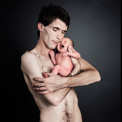 « Je photographie des pères, de 20 à 80 ans, debout, torse nu, avec leur fils de quelques minutes pour les plus jeunes ou entrés dans la cinquantaine pour les plus âgés. Ils sont proches, souvent peau contre peau.
