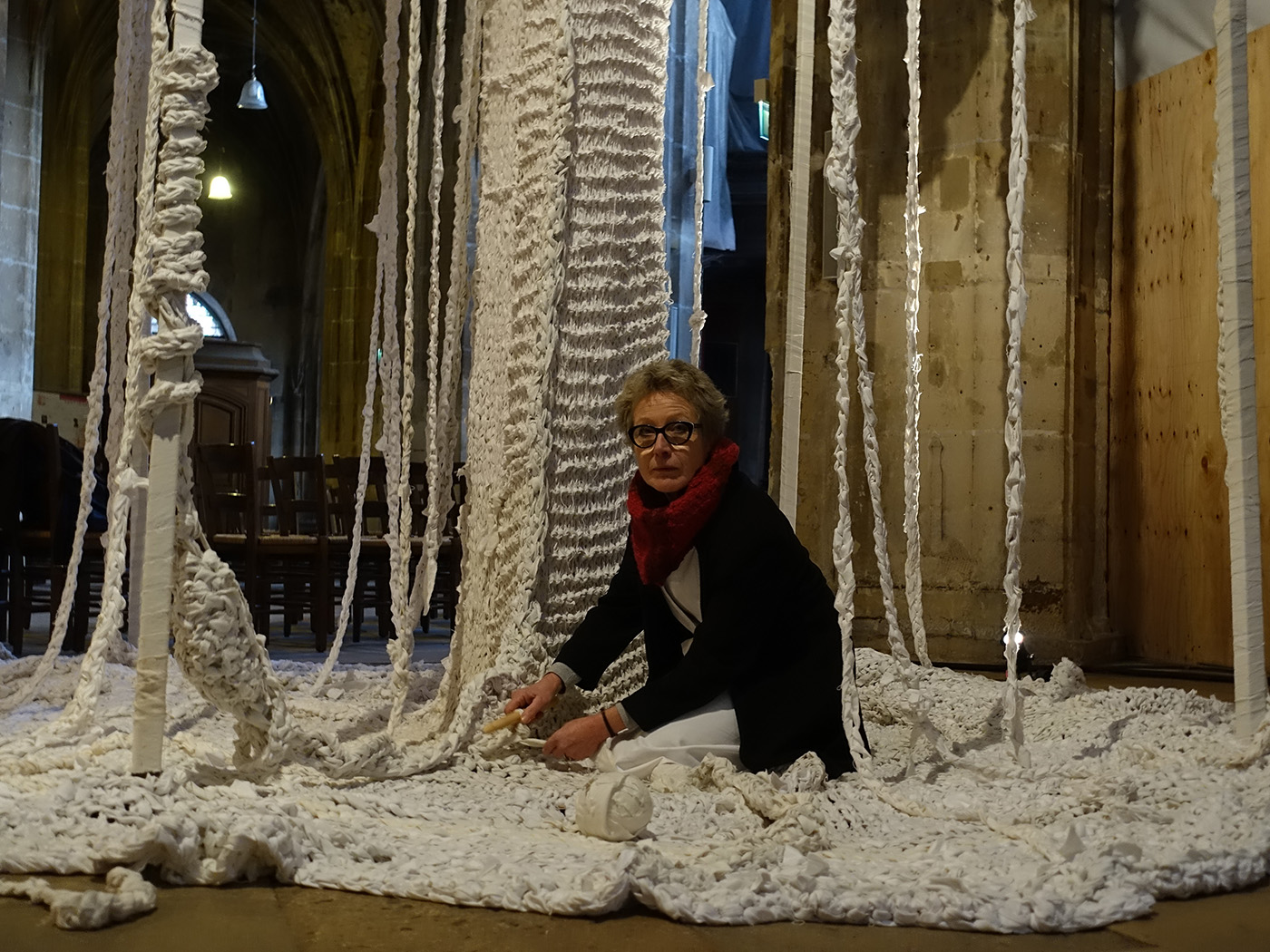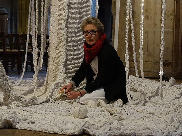 Entre le 7 et le 12 février, tous les après-midi, l’artiste continue à tisser son œuvre sur place.