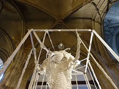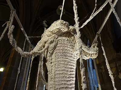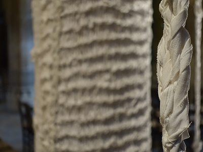 Première exposition 2016 à Saint-Merry. Une installation en draps tressés qui oscille entre référence ethnographique, histoire fabuleuse et figure de l’inconscient. Une œuvre conçue pour croître de site en site d’exposition. Une œuvre où l’étrange côtoie la beauté.