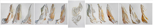 Si l’artiste est une philosophe qui manipule mots et concepts, elle fait de même avec les formes et leurs agencements qui s’avèrent éminemment plastiques. Une toile horizontale avec des plis renvoie à un linceul ; une verticale à un homme ou à une flamme ; un ensemble de tissus verticaux à une lecture des Textes bibliques : l’échelle de Jacob, l’Ascension, la Résurrection, etc. Avec les titres et les assemblages de tableaux, variables selon les expositions, l’artiste dirige l’interprétation du visiteur, qui, lui, peut voir aisément dans ces tableaux figuratifs des formes humaines ou des scènes symbolisées. Rien à voir avec le jeu sur les titres d’un Belge fameux, René Magritte, qui invitait ses amis à boire et à choisir un titre quand ses tableaux étaient achevés. Caroline Chariot-Dayez est dans la maitrise de tous les paramètres.