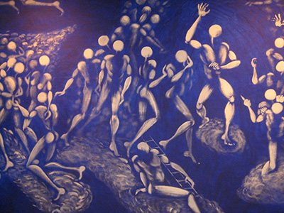 Une technique étonnante de dessin Low Tech, le Bic à quatre couleurs, au service d’un projet qui met en tension ce médium insolite des arts visuels, les sujets, l’imaginaire, le regard du spectateur. Cette œuvre qui allie le chaos et la netteté, la pauvreté des moyens et la banalité des sujets a une dimension spirituelle implicite.