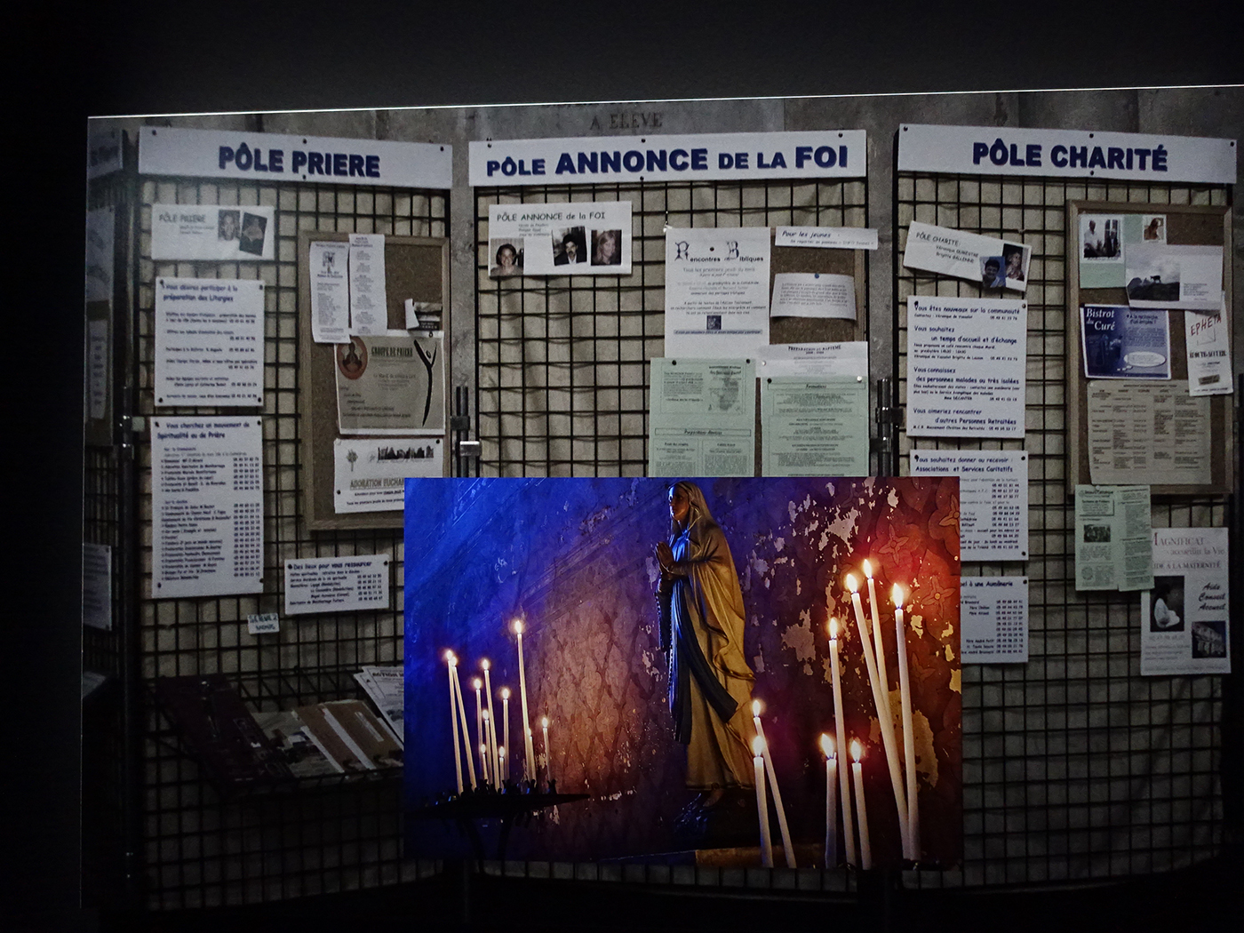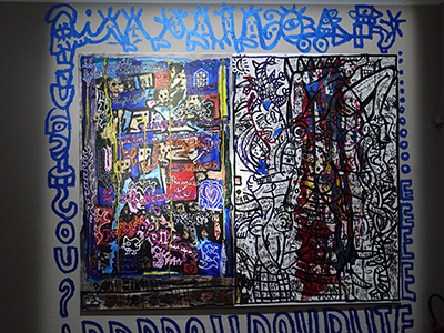Michel Houellebecq a demandé à Robert Combas, rocker et peintre néopunk, d’intervenir sur ses poèmes, puisqu’il lui était habituel d’inclure des textes dans ses tableaux. Il a fait de même et plus encore, en débordant sur les murs et en concevant un mur de crucifix. C’est probablement une des parties les plus intéressantes, car le peintre avec ses nombreuses toiles fortes, violentes par les couleurs et la forme, leur donne une équivalence visuelle. C’est jubilatoire et loin du discours désespéré que l’on trouve dans certains des romans. Le jardin secret de Michel Houellebecq se laisse découvrir avec intérêt, mais sans nul doute la présence de plasticiens de talent était nécessaire pour le mettre en scène.