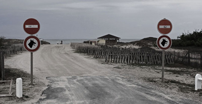 Ces clichés sont fidèles à ses romans critiques sur la société post-moderne et ses dérives, l’entrée d’une plage interdite aux chiens en est un exemple ; l’ancienne photo de la signalétique « Europe » sur la toiture d’une grande surface de Calais apparaît aujourd’hui encore plus sinistre.