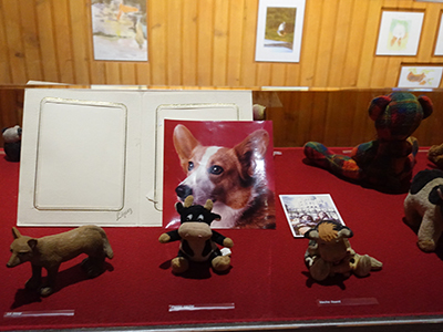 [4] On apprend dans l’exposition que lorsqu’un de ses chiens meurt, il se fait livrer, toujours par la même société, un chien de la même race, un Welsh Corgi Pembroke, comme celui de la Reine d’Angleterre.