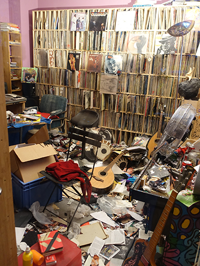 • Planter dans une exposition un atelier d’artiste en désordre complet pour évoquer le lieu secret de la création, comme celui de Robert Combas, existe déjà à Dublin, c’est celui de Francis Bacon. Michel Houellebecq qui a habité longtemps en Irlande doit le connaître.