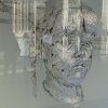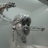Galerie Saint-Séverin : baroque, romantique ou surréaliste ? Une tête brillante flotte en l’air. Plus qu’une prouesse en aluminium, une autre approche de la beauté et de l’étrange.