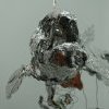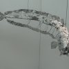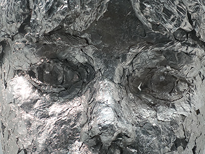 Ce « collage » en trois dimensions d’un fragment d’humain avec un animal trouve son origine dans un extrait de texte spectral de Victor Hugo, provenant du roman" Les travailleurs de la mer " et dans le dessin par l’artiste du visage de sa fille. Aucun lien ne semble les relier. Et pourtant, Laurent Esquerré en fait une œuvre par son sens visionnaire de l’espace de l’artiste, son goût pour la beauté et sa maitrise d’un matériau commun, des morceaux martelés de feuille d’aluminium de 50 microns. Une beauté étrange et harmonieuse, produite avec 2 kg de matière au plus !