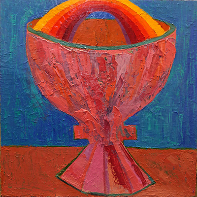 On peut l’interpréter comme une lecture littérale de phrases liturgiques, un calice et la nouvelle alliance. Un nouvel archétype d’une peinture sacrée ?