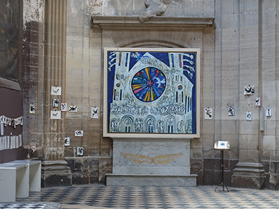 À partir du 7 juin, Renaud Allirand (alias Dip) a accepté le pari de donner un autre visage à la nef de Saint-Merry dont le dallage va être progressivement ouvert en juin et juillet 2017 pour refaire le système de chauffage, opération préliminaire à la réfection des grandes orgues.