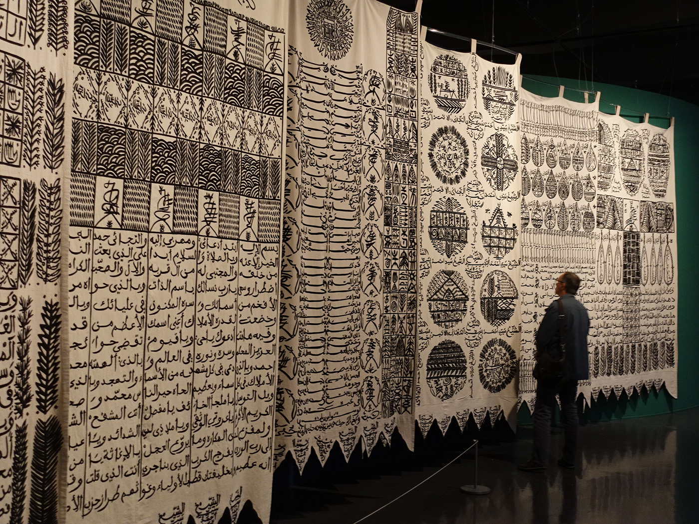 Dans le cadre de l’exposition « Trésors de l’islam en Afrique. De Tombouctou à Zanzibar », le propos des commissaires n’était pas de développer les points de vue autonomes de l’art, ce que les artistes font naturellement même lorsqu’ils sont dans la commande. Mais les œuvres choisies nourrissent le parcours fort structuré de l’exposition qui mêle géographie, histoire, société et expressions variées d’une culture matérielle et immatérielle.