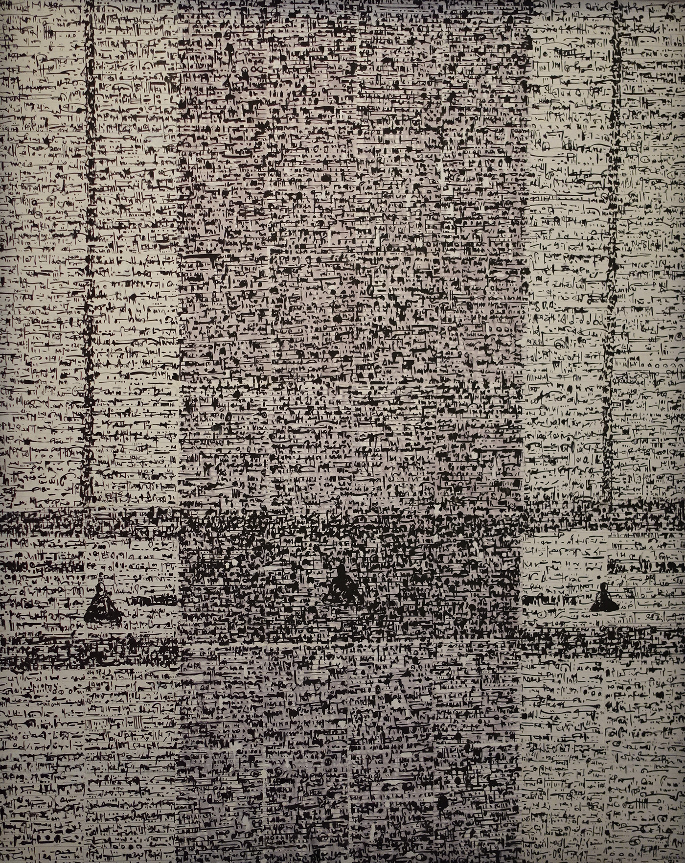 La question de l’écriture est l’un des fils rouges de l’exposition où nombre de pièces montrent l’importance de ce vecteur d’expression humaine dans cette région, contre l’idée de la domination de la transmission orale. Ce thème a inspiré de nombreux artistes qui vont au-delà de la calligraphie.