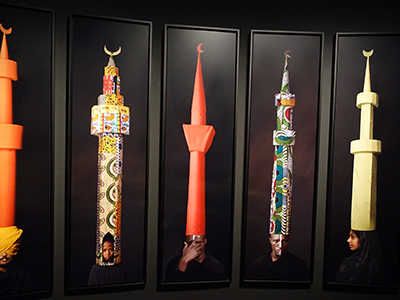 L’artiste s’est convertie à l’islam au Sénégal où elle s’est rapprochée de la confrérie soufie Baye Fall. Les personnages portent des minarets réalisés en cartons et tissus, dont certains sont à l’image de ces monuments érigés au Sénégal. Ces prolongements du corps peuvent être lus comme des effets de l’énergie spirituelle des personnages. Les sujets se cachent parfois le visage pour signifier qu’ils s’extraient du réel et tentent de se rapprocher du divin.