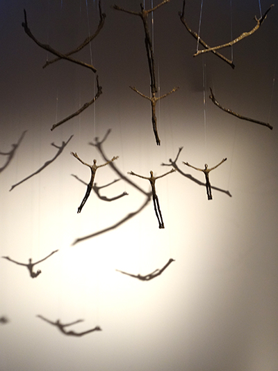 Réalisées avec des matériaux de récupération, ces sculptures mettent en avant la figure humaine tout en s’inspirant de la spiritualité tijâne. Ces figurines dans les gestes traditionnels de la prière s’élèvent à la rencontre du divin. On retrouve de telles dynamiques dans les sculptures métalliques occidentales de Germaine Richier ou d’Antony Gormley.