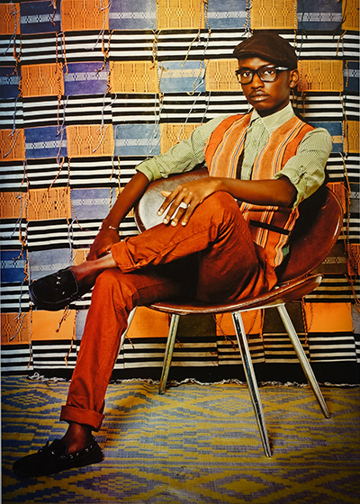 Le jeune artiste sénégalais est devenu rapidement une des stars de la photographie africaine. Il prend le relais des grands portraitistes de studio tels Mama Casset ou Seydou Keïta et renouvelle le médium. Il situe ses sujets dans des contextes historiques déterminés, ici l’image de la mode et du design contemporain en Afrique, auxquels il attribue un avenir optimiste. Mais en reprenant les tissus peuls, il traduit son goût pour la couleur et les motifs issus de l’artisanat traditionnel.