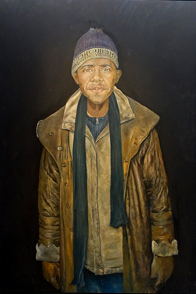 L’artiste évoque l’endoctrinement des jeunes par les islamistes radicaux et leurs prêches. Dans ces situations étranges, mais puisant dans les pratiques du quotidien, les visages casqués expriment l’annihilation de tout esprit critique.