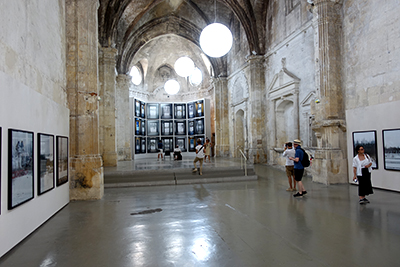 L’accrochage dans l’église des Trinitaires joue avec l’aspect dépouillé de l’architecture du lieu et concourt à la méditation visuelle.