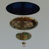 Sans nul doute, il s’agit de l’autoportrait d’un plasticien qui a beaucoup voyagé, et que l’on découvre avec son humour propre et son goût vestimentaire cosmopolite. Devant cet homme, cinq pièces de verre taillé, délicatement posées sur le plancher blanc : des pierres d’un ruisseau ? La symbolique de celui-ci ?