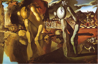 Explication. Dans ses souvenirs d’enfant, l’artiste espagnol rappelle qu’à l’école, lorsqu’il s’ennuyait et observait les taches d’humidité sur le plafond, il voyait des images « réelles » et perfectibles. Des images qui en entraînent d’autres tout aussi réelles. Plus tard, dans le cadre des recherches surréalistes (et de la proximité entre rêve et psychanalyse), il va approfondir ce que Freud appelle « la psychose paranoïaque » qui alors est définie comme une folie raisonnante (soit un délire structuré à partir d’une interprétation fausse). En 1930, il écrit un texte « l’âne pourri » (n°1 de la revue Le Surréalisme au service de la révolution) dans lequel il précise son intérêt pour la paranoïa qui n’est pas hallucination, mais une force conduisant, à partir d’images claires, à discréditer (comme l’automatisme) le monde de la réalité : la réalité du monde extérieur est alors mise au service de la réalité de notre esprit et c’est par ce processus qu’il obtient une image double prenant la place de l’idée obsédante….